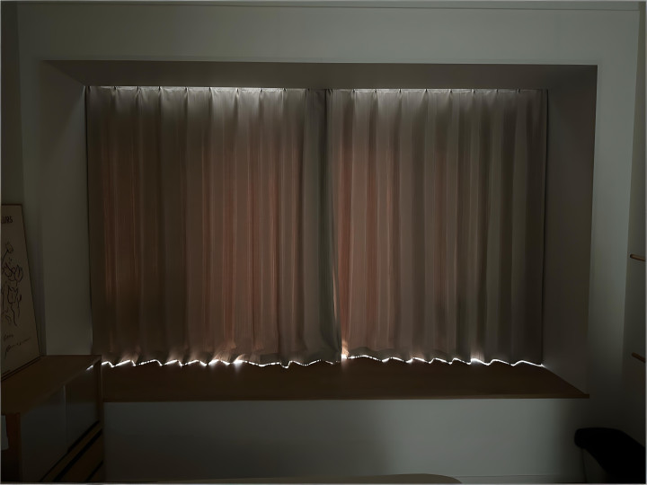 和鄙俗窗帘不同样,中波帘在遮光细节上作念得特殊到位。顶部和轨说念贴合得很致密,毋庸复杂的窗帘盒,毛糙装个窄边窗幔,大阳城(SuncityGroup)就能挡住顶部的漏光点;侧边有柔性压边条,能牢牢贴住墙体,不会留过错漏光;就连窗帘闭合的中缝,也绸缪得很小巧,合上之后严丝合缝,不会有晴明从中间渗进来。