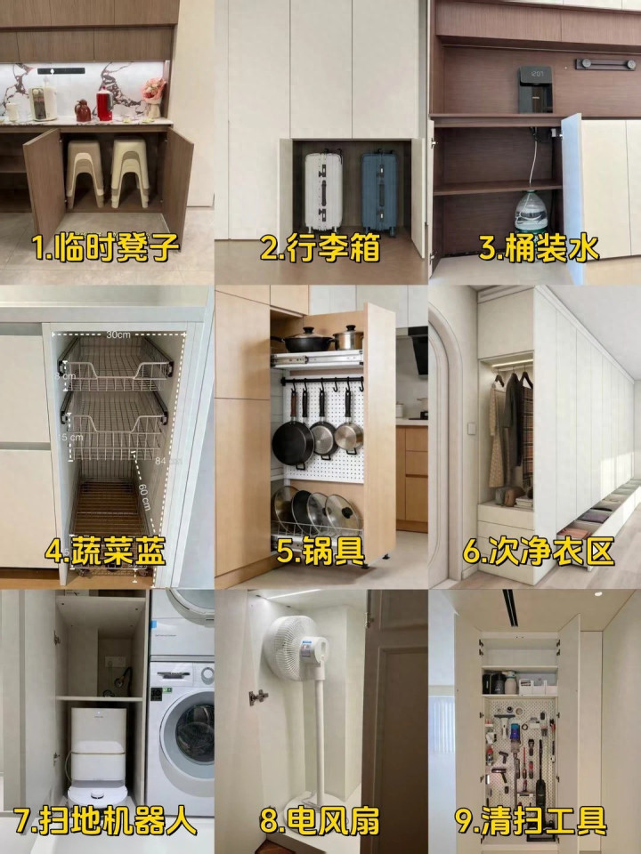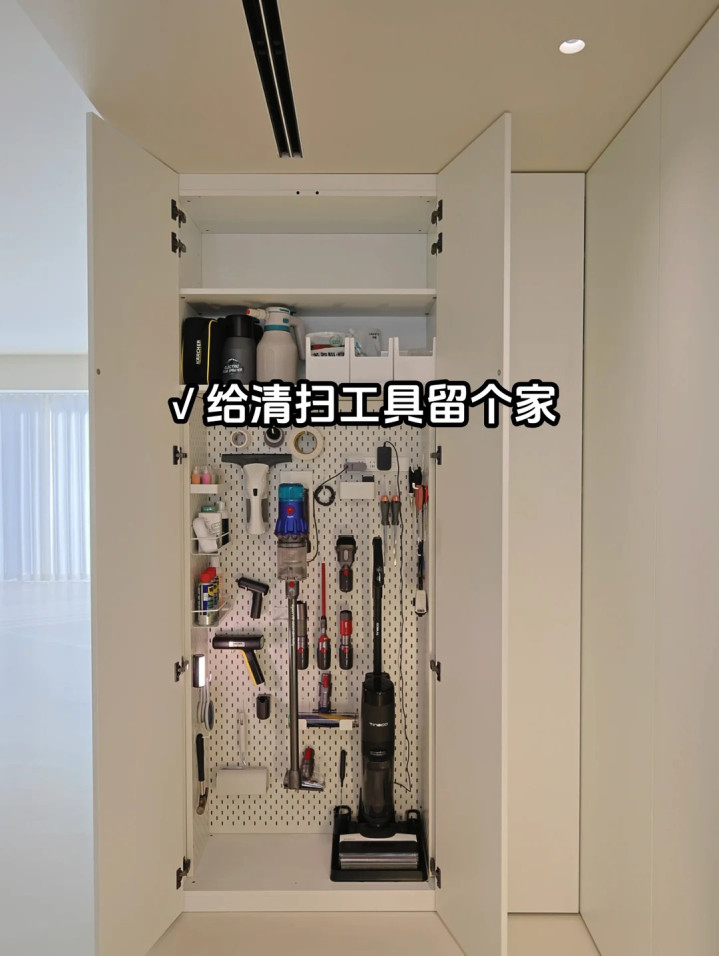 9、清洁用具藏进柜——扫把拖把不过露,家里看着像没作念过家务