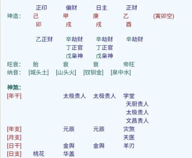 卯为父,己为母,财印相克,父母婚配不利,有差异之象。