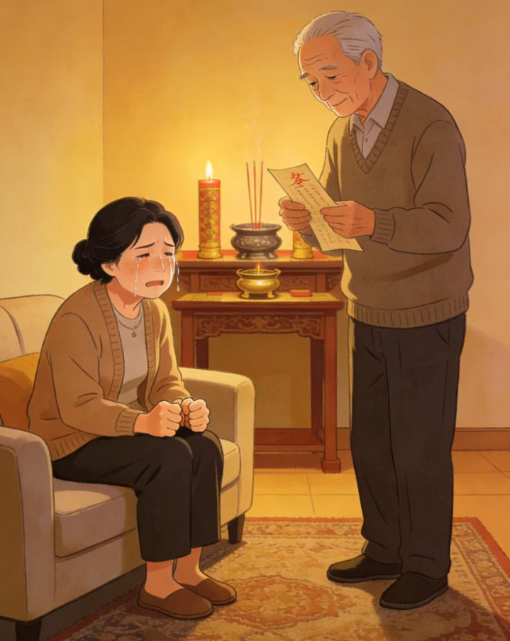 又有一天,陈夫人来了,哭诉老公最近回家晚,礼服有外遇。爷爷让她抽了个签,是支上上签。爷爷解签说:“夫东说念主,签文上说‘疑心生暗鬼,和煦致祥云’。你且归后,不管先生多晚回首,给他留一盏灯,煮一碗热粥,别问去处,营救一个月,自有分晓。”
