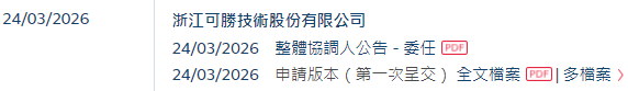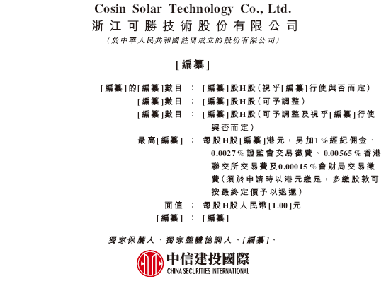 2026年3月24日,来自浙江杭州钱塘区的浙江可胜工夫股份有限公司CosinSolarTechnologyCo.,Ltd.(简称"可胜工夫”)在港交所递交招股书,拟在香港主板挂牌上市。这是继其于2025年9月24日递表失效后的再一次苦求。