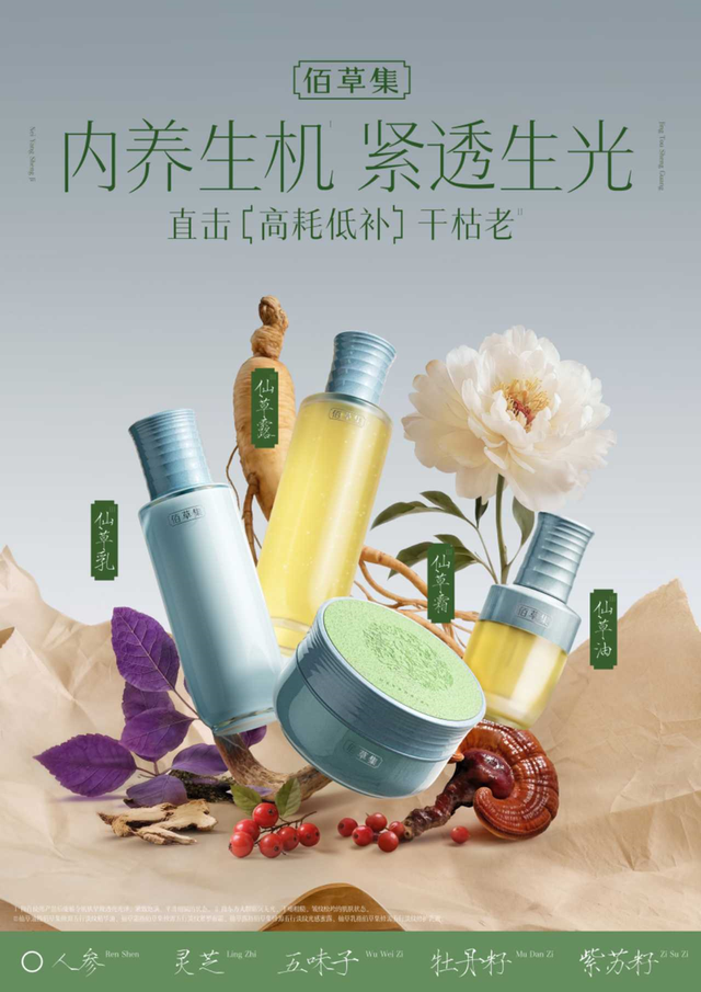 佰草集以“好意思自根源养有方”的品牌内核为锚点。上半年,聚焦好意思白赛说念,风光级单品“大白泥”以“新七白”古方为基础,通过改良配方得到好意思白特证、创新推出“三明治敷法”,全年线上GMV冲突2亿元,成为公司年内首个线上“亿元单品”。下半年鼓吹品牌重塑,不仅完成视觉体系全面升级,还推出全新品牌心智线“修源五行系列”,其中仙草油居品为精华油赛说念注入新活力。佰草集先后举办“以中国方养中国白”瓷韵之夜、“豫见佰草,根源养好意思之夜”等品牌步履,从居品到心智构建东方养好意思更生态。