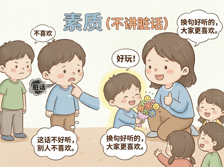 活命中咋说?听到孩子说脏话,别笑,也别生气。致密看着他说:“这话不顺耳,说了别东谈主不可爱你。咱换一句顺耳的,好不好?”