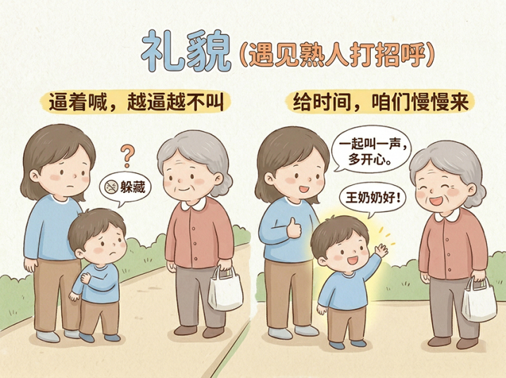 活命中咋说?别逼着孩子叫,越逼他越不叫。外出前先跟他说:“待会儿看见王大姨,咱沿路叫一声好不好?”
