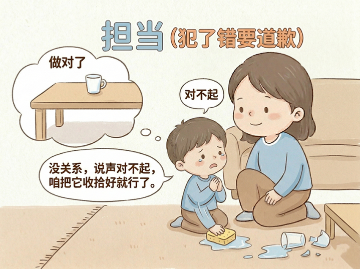 让孩子知谈——认错不丢东谈主,推卸连累才丢东谈主。