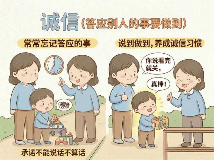 言出必行,从小事作念起。孩子逐渐就知谈——迎接别东谈主的事,不可语言不算话。
