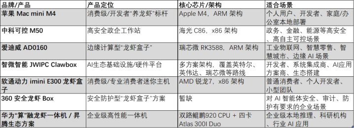 主流国产“龙虾盒子”对比,来源:与非霸术院整理