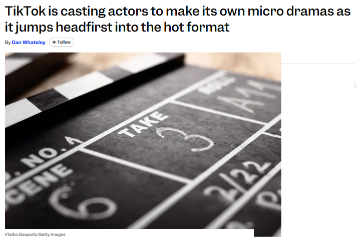 但更值得关爱的是,TikTok还是不知足于只作念平台。据里面职工邮件表现,本月TikTok还是启动为一档新短剧招募演员,规划打造一部肥皂剧作风的作品。TikTok其实早有布局,早在旧年11月,它就在好意思国请求了“TikTok Drama”的商标,业务限制明确包含短剧、电视节目和汇注剧集的建造与制作。