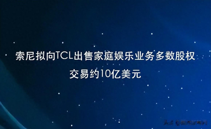 近日,有媒体报说念以及知情东说念主士露馅,索尼集团正接近实现一项具有握住力的条约,拟将其家庭文娱业务(包括Bravia电视品牌)的大都股权出售给TCL电子控股有限公司,这次交游估值或约10亿好意思元。