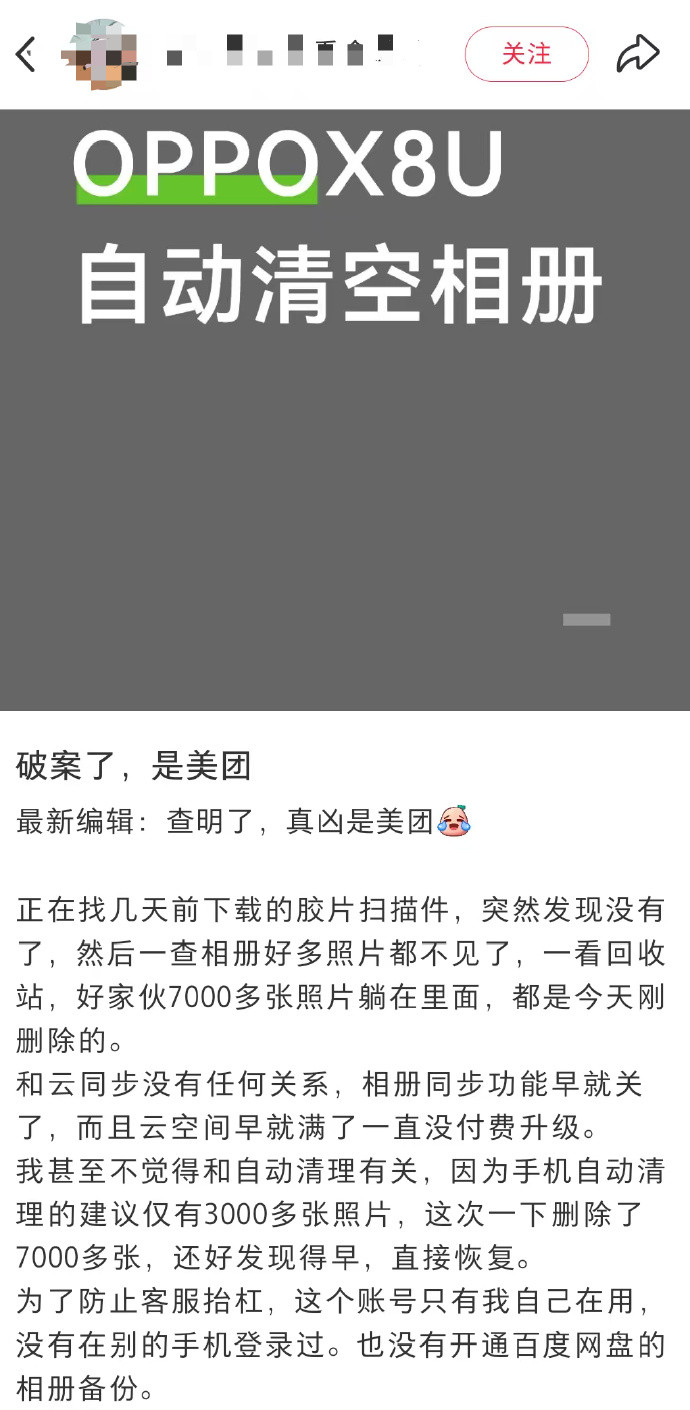 关连词,要是有一天,你眼睁睁看着这个保障箱被一个绝不有关的App偷偷清空,你会作何感念?近日,多位网友在外交平台上曝光了一件令东说念主后背发凉的事件:在我方未进行任何操作的情况下,手机相册里成百上千张像片和视频被自动删除。