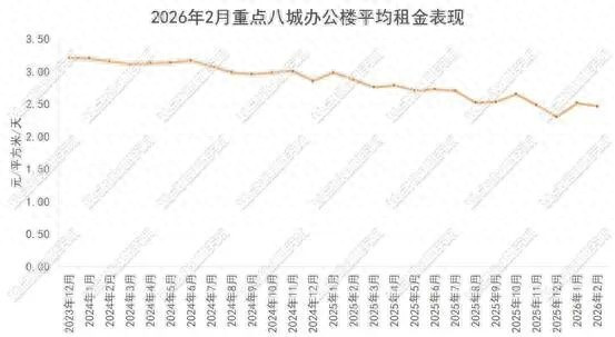 从数据来看,2026岁首,办公租出商场出现阶段性企稳与弱建立。1月八城均值回升至2.51元/闲居米/天,2月小幅回调至2.46元/闲居米/天,商场在承接深度养息后,已渐渐接近底部区域,房钱连续大幅下探的空间有限,呈现止跌趋稳、弱建立的特征。