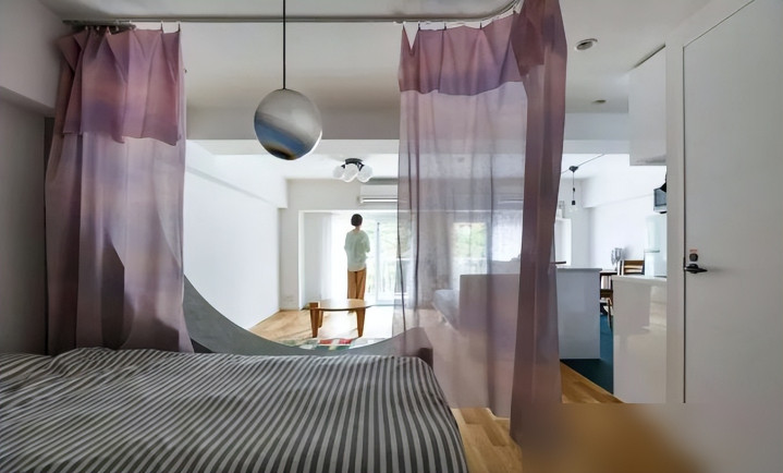 卧室用布帘代替门,是个斗胆的聘用。紫色帘子一挂,隐独有了,还多了点放荡和即兴的滋味。省下作念门的钱和空间,合算。卧室里东西少得愁然,就一张床一盏灯。但看那吊灯的描画,夜里亮起来,预计即是统共房间的灵魂。东谈主到中年,大阳城(SuncityGroup)反而开动可爱这种“少即是多”的嗅觉,东西多了,心就乱了。