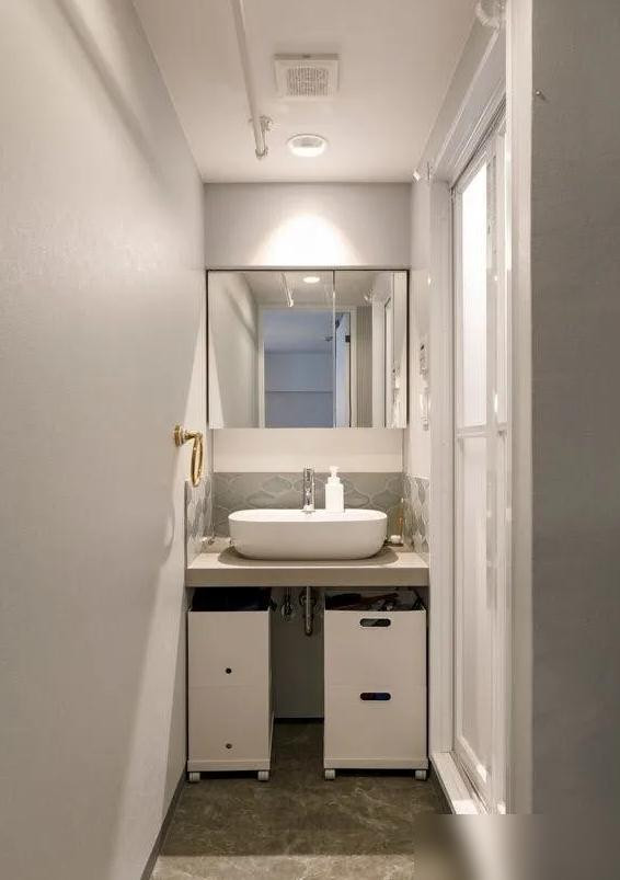 通达式厨房配白色橱柜,澄莹,显方位大。大地材质和客厅分开,好收拾,这齐是过来东谈主的训诫。卫生间干湿分散是基本操作,把洗手台挪外面,早上赶技术不打架,柜子也不怕受潮。
