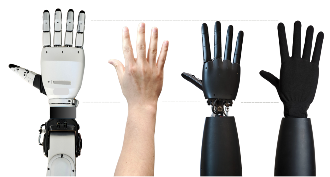 为了更好地复用通过东说念主手网罗的数据,机器东说念主仿新手需要尽可能策画成和东说念主手 1:1 的比例,具备近似的构型。同期在可达空间、开动才智、惯量散播及操控反馈等方面也尽量对标东说念主手,减少仿真和真机的各异,减少同构问题带来的影响。