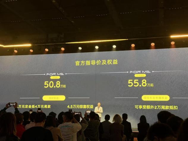 新车预售价50.8-55.8万元。同期,预订用户还将享受两万定金抵4万元尾款,4.5万元惊喜职权。现任车主复购将享受2万尾款抵扣。