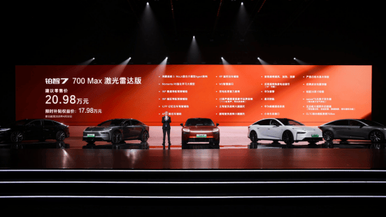 700Max激光雷达版在700Max版的基础上,增多了Momenta R6大模子高阶智驾缓助系统,限时补贴权力价17.98万元。用户再加5000元选装基金,即可升级至700Max激光雷达双腔空悬版,最终18.48万元就能一次性配皆华为鸿蒙座舱5、Momenta R6大模子激光雷达智驾、双腔空悬等超豪华三件套,成为20万内唯一能同期领有这三大中枢建树的纯电车型,性价比拉满。