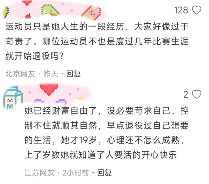 是啊,当一个芳华期女孩同期要应酬躯壳巨变、竞技压力和公众注释时,咱们是否给了她充足的意会和空间?
