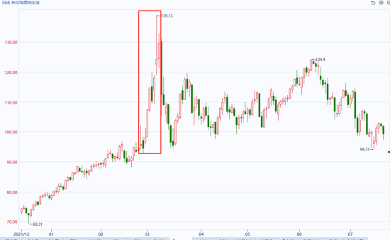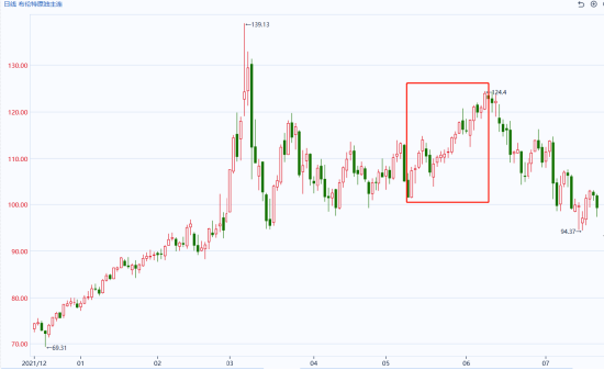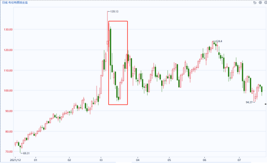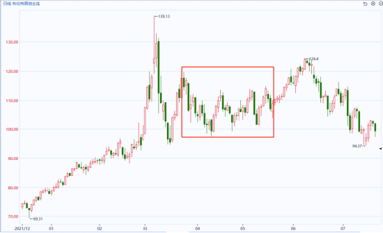 l心扉极点(3月8日):好意思国与英国接踵晓喻不容入口俄罗斯石油,西方对俄动力制裁“靴子落地”。这告成将供应中断的慌乱推向顶峰,布伦特原油收盘接近130好意思元/桶,创下当年最高点。“斗争溢价”在此阶段达到极致。立时油价运行回落,回逾期剧烈波动。