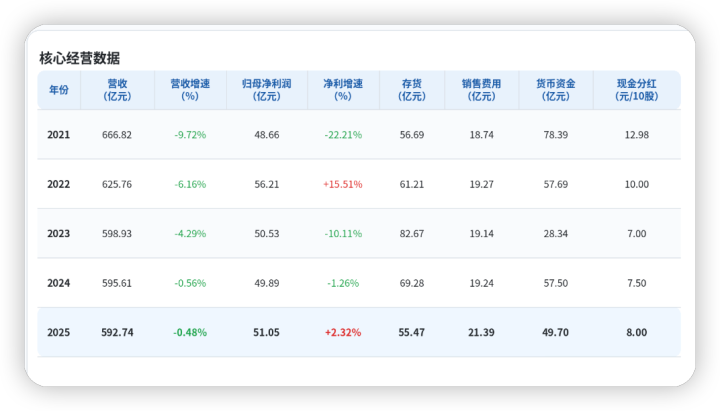 3月24日晚间,双汇发展浮现2025年年度陈诉。陈诉期内,公司竣事贸易收入592.74亿元,同比下降0.48%;包摄于上市公司股东的净利润51.05亿元,同比增长2.32%。公司拟向全体股东每10股派发现款红利8元(含税),共计分成约27.72亿元,延续了其上市以来一贯的高分成传统。