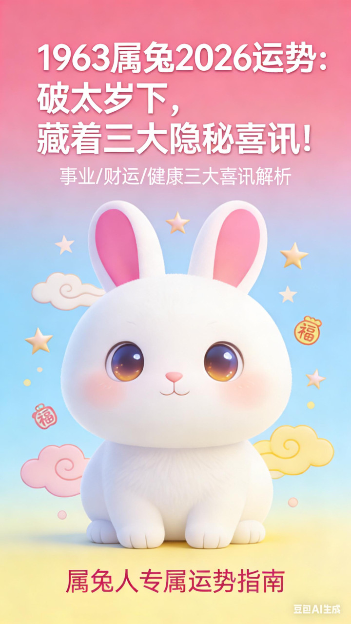 #1963属兔 #2026运势 #破太岁 #天喜星 #天德星 #破中藏喜 #家庭和气 #东说念主丁兴旺 #贵东说念主合作 #心态重塑 #中老年生肖运势 #2026马年运势UED体育中国官方网站入口