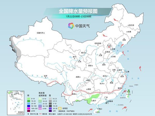 未来,新疆西南部、西藏西部等地部分地区有小到中雪,其中,新疆西南部局地有大雪。云南东南部、广西中西部、台湾岛等地部分地区有小到中雨。