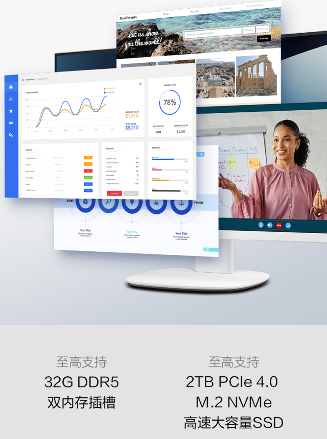合作32GB DDR5高频内存与1TB PCIe 4.0 SSD的存储成就,整机在驱动千般才气时齐能快速反应,后台多开依旧丝滑驱动。1TB大容量存储空间,足以存放多年的责任文档、名堂素材以及家庭像片视频。至高搭救膨大至2TB PCIe 4.0 SSD,后续有更大存储需求也能浅显升级。岂论是文献读写已经才气加载,齐能感受到疾速体验。