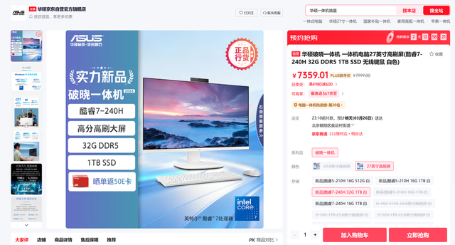 3月25日,最新的华硕破晓一体机在华硕京东官方自营旗舰店厚爱开售。这款面向日常办公与家庭场景的全新产物,搭载英特尔酷睿7-240H解决器与27英寸高分高刷大屏,以节约一体化的筹画、平衡全面的成就,为追求高效与整洁桌面的用户提供新的选拔。