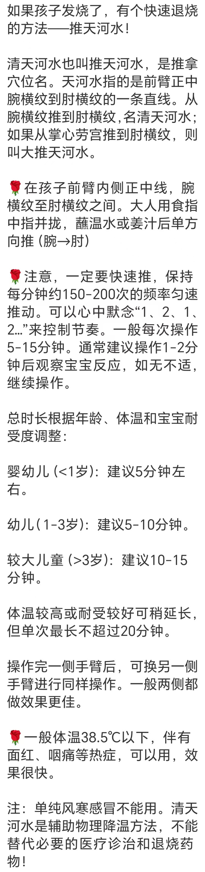 不外要记好,这个格式不是全能的。如果孩子是单纯着凉引起的发热,就不合乎用这个见地;况且它仅仅补助降温,弗成替代吃药和专科调整。淌若孩子烧得相配高,跨越38.5℃,或者精神景色差、哭闹不啻,一定要实时去病院,该喂退烧药就喂,别只靠按摩。